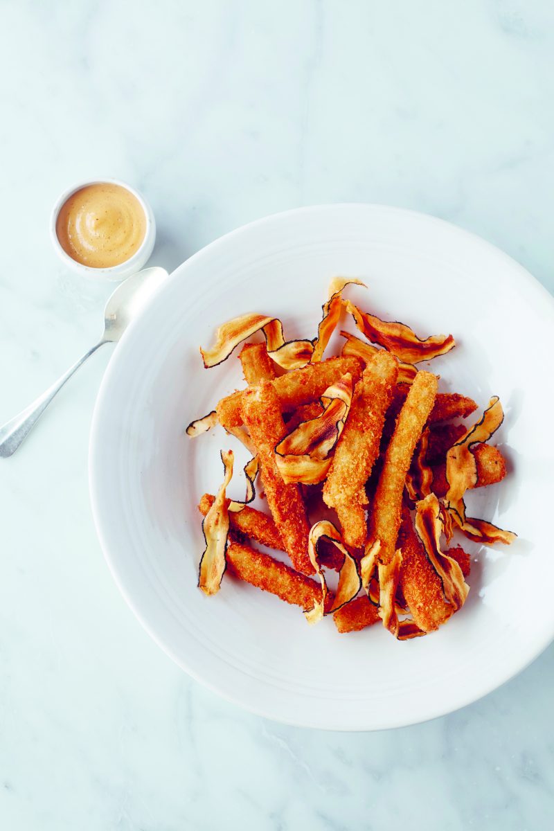 - Serveer de gepaneerde schorseneren en de schorsenerenchips met de schorsenerendip.