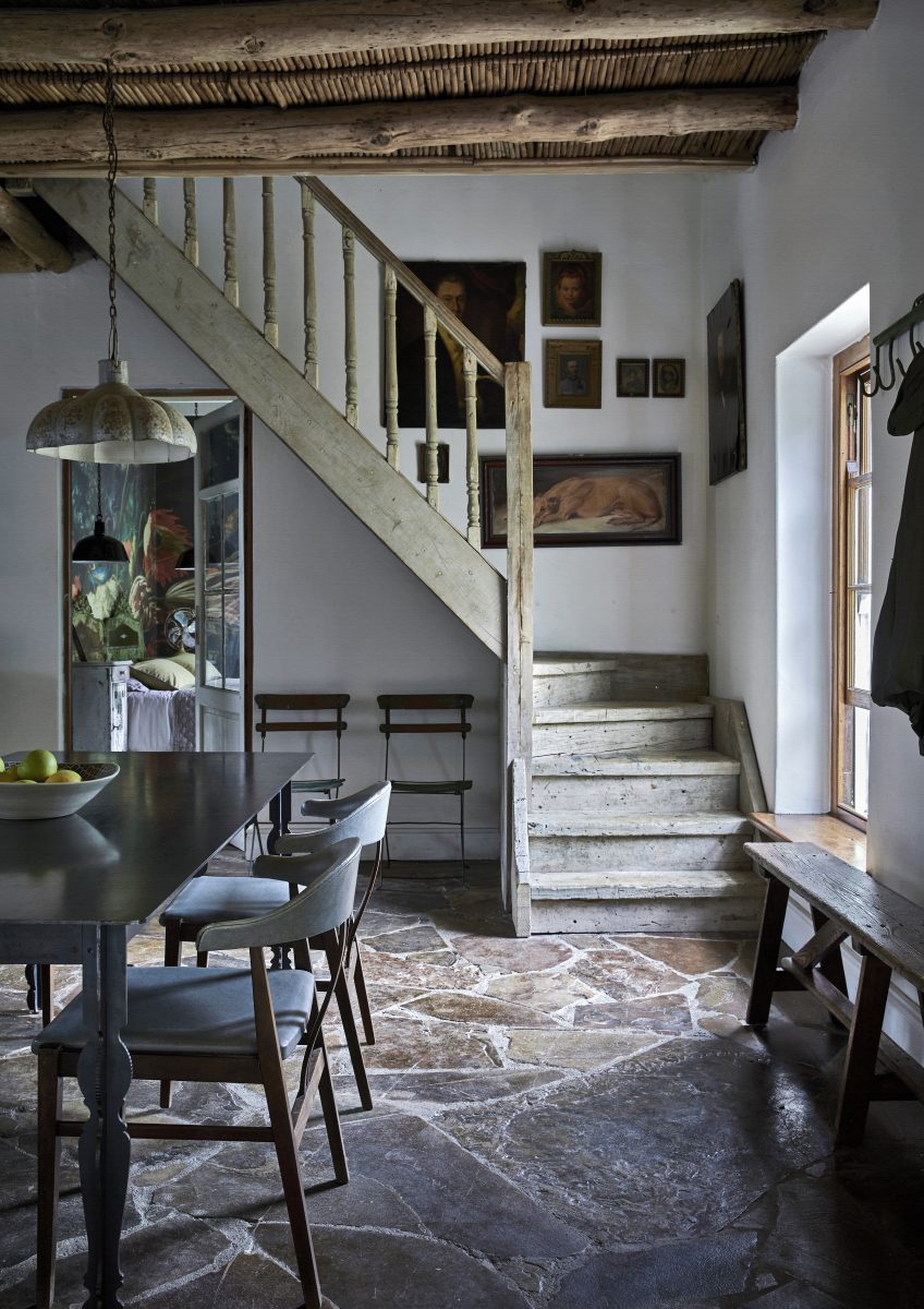 De flagstones op de vloer zijn authentiek, de oude portretten in het trappenhuis komen van een vlooienmarkt.