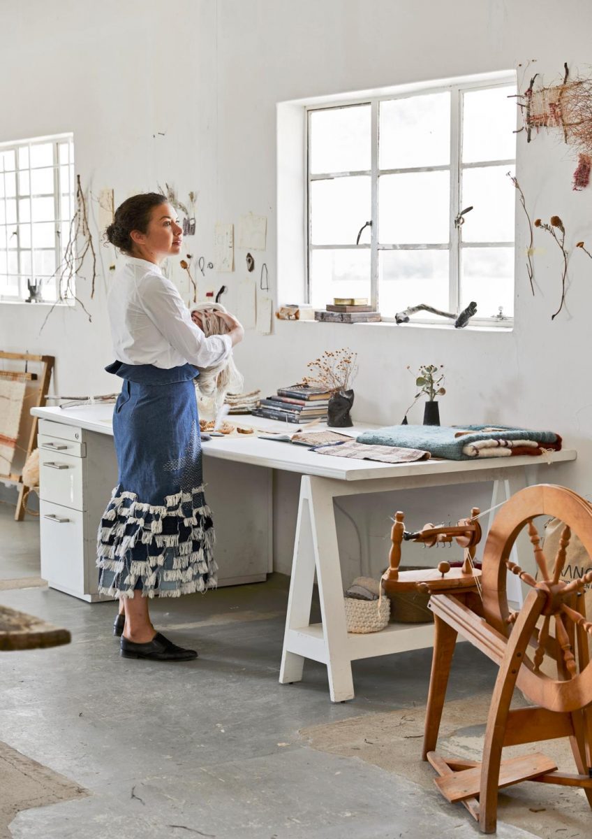 Dus werkte ze na haar studie een aantal jaar in de textielindustrie in Hongkong. Hoe langer ze hier aan de slag was, hoe meer haar de ogen geopend werden. “Een duurzame economie vind je niet in fabrieken. Ik moest steeds vaker denken aan de woorden van mijn vader en aan mijn thuisland waar zo veel vakmanschap is en waar we een prachtproduct maken. In de Karoo-woestijn wordt ’s werelds grootste voorraad mohair geproduceerd door angorageiten. Hoe is het mogelijk dat tachtig procent ervan wordt geëxporteerd? Lokaal doen we er vrijwel niets mee, terwijl we een rijke geschiedenis hebben in traditionele weeftechnieken.” Langzaam maar zeker kregen haar ideeën meer vorm. “Ik wilde op een duurzame manier, met een lokale toeleveringsketen, handgeweven tapijten maken. Met als doel om het vakmanschap van het spinnen en weven te behouden en werkgelegenheid te bieden aan de ambachtslieden, vooral vrouwen, op het platteland van Zuid-Afrika.” Het was tijd om terug te keren naar haar roots.