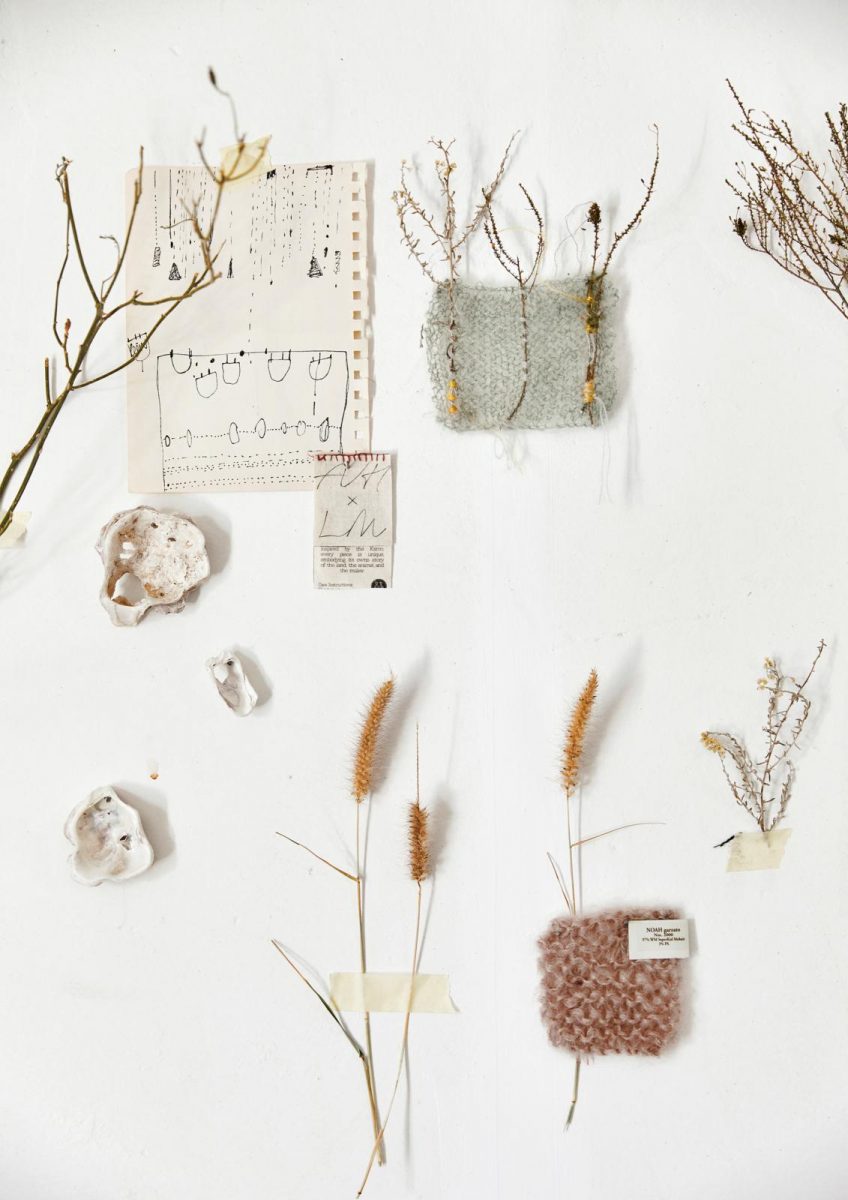 Frances werkt met een handjevol vrouwencollectieven door heel Zuid-Afrika. Elke stap – van het spinnen van het garen tot het weven en bijsnijden van een afgewerkt tapijt – doen zij met de hand. Haar eigen atelier is de plek waar de ideeën geboren worden. Hier verzamelt ze stalen, kleurproeven en ander werk in uitvoering. Er staan verschillende weefgetouwen waarop ze nieuwe kleurcombi’s of patronen uitprobeert. Continu onderzoekt ze de mogelijkheden die mohairtextiel biedt. “Eigenlijk is deze wol het ideale materiaal: door zijn natuurlijke vezel blijven kleuren heel intens, het is makkelijk om schoon te maken en voelt superzacht onder je voeten.” Opvallend is haar ‘inspiratiemuur’, bezaaid met schatten uit de Karoo. Gedroogde kruiden, zaadbollen, takjes: het inspireert haar tot nieuwe creaties. “De natuur is van begin tot einde ‘de rode draad’ in de vloerkleden. Misschien denk je: wat voor inspiratie valt er te halen uit zo’n droog en stoffig landschap? Het dwingt je om verder te kijken. Dan zie je ineens de rijke kleuren van kwetsbare bloemen en struiken of hoe de zon schittert op de rotsen en voor poederbruine tinten zorgt. Dat probeer ik te vertalen in de kleden.”