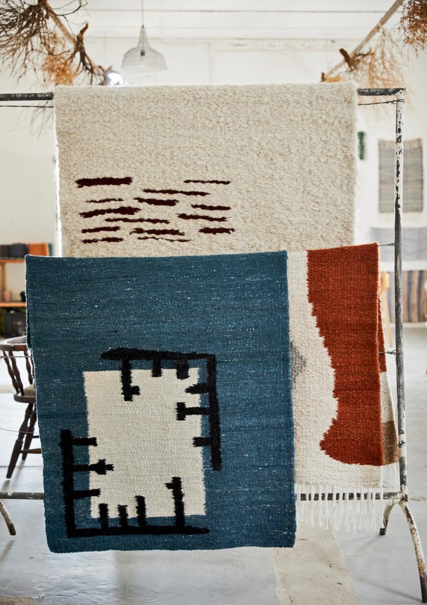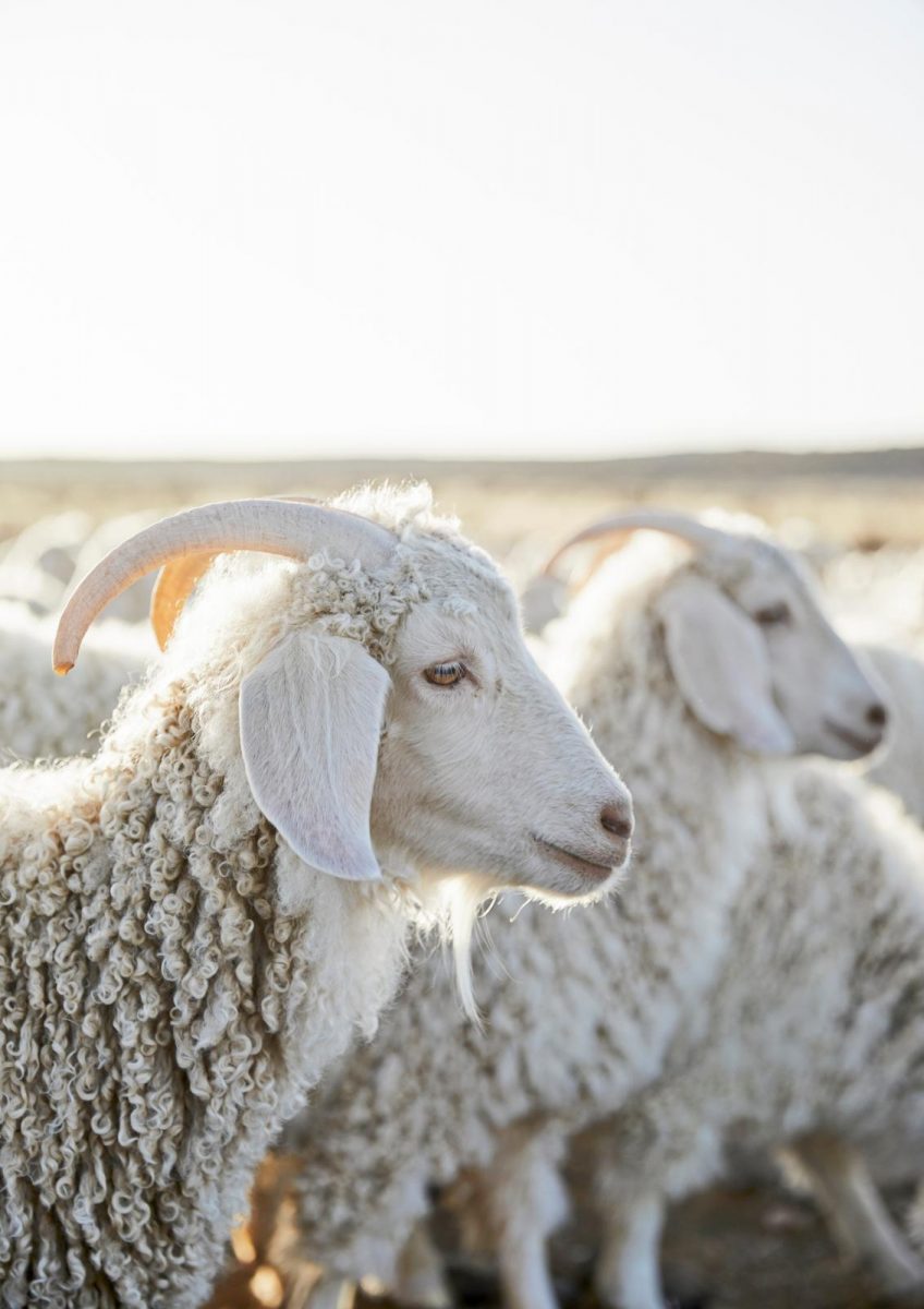 Handgeweven tapijten geïnspireerd op het rauwe landschap van de Zuid-Afrikaanse Karoo-woestijn. Samen met locale vrouwencollectieven maakt Frances van Hasselt de mooiste tapijten van mohair. Met een speciale vermelding voor de angorageit die zorgt voor het delicate materiaal dat van nature duurzaam is. tapijten van mohair Droog en vrijwel onbegroeid. Zo zou je de Karoo, een streek die ongeveer een derde van Zuid-Afrika beslaat, het beste kunnen omschrijven. Het landschap is er ruig, met rotspartijen en hier en daar een stoffige weg. In de halfwoestijn – er is nog wel íets van regenval – wisselt verzengende hitte zich af met ijzige kou. Alleen planten die gedijen in deze temperaturen overleven hier: grassen, stekelige struiken en succulenten. Het gebied dat vooral indruk maakt vanwege z’n leegheid is dé inspiratiebron van Frances van Hasselt; zij maakt tapijten (en knitwear en dekens) van mohair. En dat terwijl ze als tiener heel andere plannen had. “Ik groeide op in Prins Albert, een dorpje in de West-Kaap. Op een boerderij waar mijn familie angorageiten houdt voor hun mohair. Ondanks mijn passie voor hun wol – het is prachtig materiaal dat glanst als zijde – droomde ik van de grote stad en een carrière in de mode. Mijn vader zag me liever niet vertrekken en probeerde me ervan te overtuigen dat mode begint bij de stof en dat de kwaliteit daarvan weer afhangt van de zorg voor het land en de dieren. Maar de stad trok te veel.”