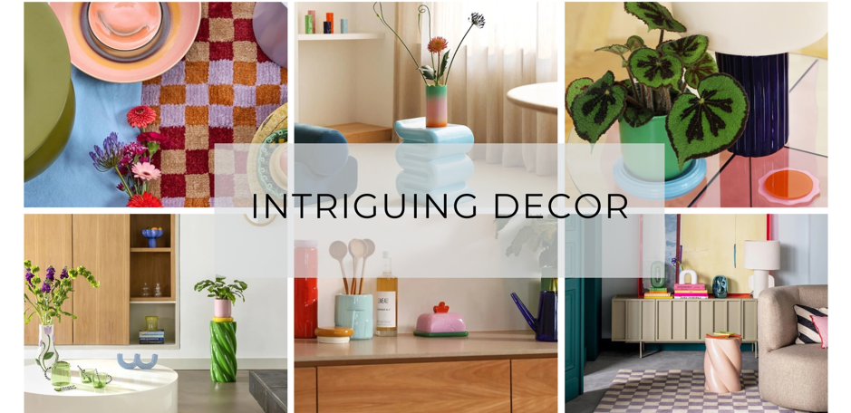 Heb je behoefte aan een zachte landing na een harde dag? Intriguing Decor is jouw interieurdroom: aaibaar, verrassend en een tikkeltje rebels. Als antwoord op de verharding in de samenleving bestaat deze woonstijl uit golvende lijnen, fluffy texturen en vriendelijke vormen. De kleurenkaart bestaat uit diepe auberginetinten, warm roodbruin en poederachtig roze, gecombineerd met olijfgroen, zachtgeel en een vleugje blauwpaars. Een auberginekleurige bank als een wolk, een blauwpaarse lamp met chubby design, en een roze bijzettafeltje dat je doet denken aan een marshmallow: alles voelt rijk, gelaagd en zacht. Je wilt het aanraken, voelen, ervaren.
