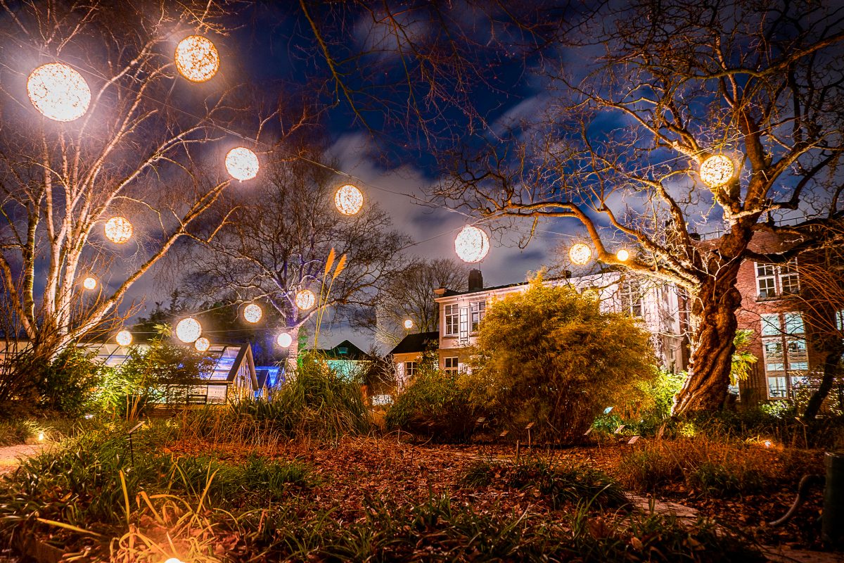 Tijdens de winterdagen kun je volop genieten van een sprookjesachtig verlichte tuin en kassen, met daarin eeuwenoude palmen en bijzondere tropische planten. Opwarmen doe je bij het kampvuur, met een kopje warme choco of glühwein dat je kunt afhalen bij de Oranjerie. Kinderen kunnen luisteren naar spannende wintersprookjes, volwassenen kunnen leren over schimmels en andere ondergrondse zaken tijdens diverse workshops, rondleidingen en andere activiteiten.