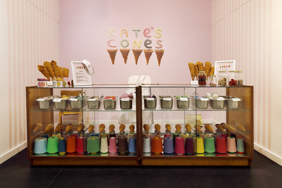De bakkerswinkel bestaat uit meer dan duizend cakejes, taarten, broden en andere gebreide en gehaakte lekkernijen. Met een feestelijk accent: speciaal voor de feestdagen zullen er Kerstkoekjes en Kerstkransjes in Kate’s Bakes liggen. De ijssalon presenteert gebreid en gehaakt ijs met Kate’s kenmerkende humoristische woordspelingen, die de titels vormen van de vele verschillende ijsjes.