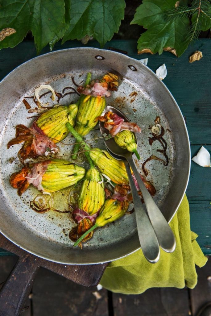 Ciao zomer! Op een warme zomermiddag dekken we de buitentafel en koken Italiaans. Niet ingewikkeld, wél verrukkelijk. Gerechten die het beste in de pure ingrediënten naar boven halen, zoals de Italianen dat zo goed kunnen. Zoals deze overheerlijke courgettebloemen gevuld met ansjovis en ricotta.