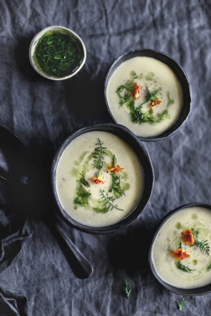Geroosterde-courgettesoep met citroen-dille olie