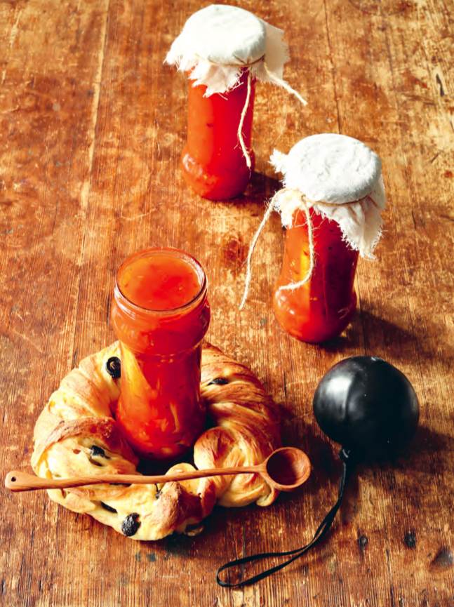 - Doe alle ingrediënten in een pan, breng aan de kook en laat al roerend ongeveer 30 min. zachtjes koken. Voeg de rozenbotteljam toe en kook al roerend nog 5 min. door. Schep de hete chutney in potjes en sluit direct af.