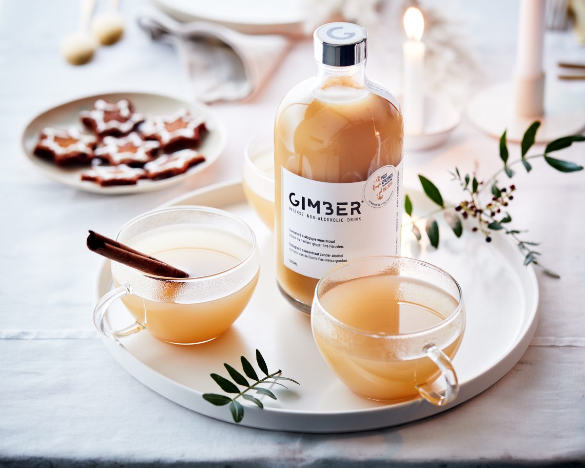 Dimitri ging op zoek naar een drankje dat zijn smaakpapillen kon opfleuren, zonder er een licht gevoel in het hoofd aan over te houden. Omdat hij er geen kon vinden, creëerde hij het zelf. Zo ontstond Gimber, een concentraat boordevol kwalitatieve biologische gember, citroen, kruiden en specerijen. Omdat het oog ook wat wil zit het ook nog eens verpakt in een prachtige fles. Aan jou wat je ermee maakt, wij tippen dit verwarmende trio (de recepten vind je hier):