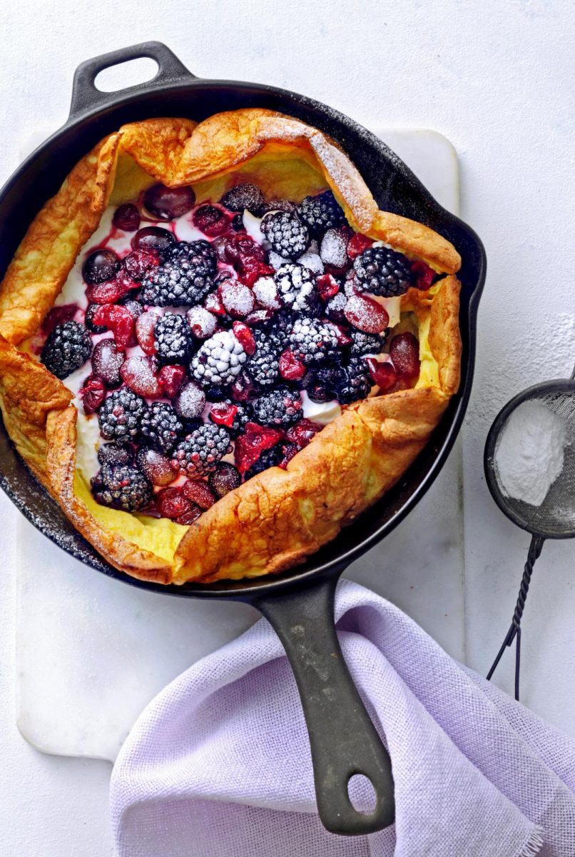 Smulrecept: Dutch baby met gemengde bessen, munt en yoghurt