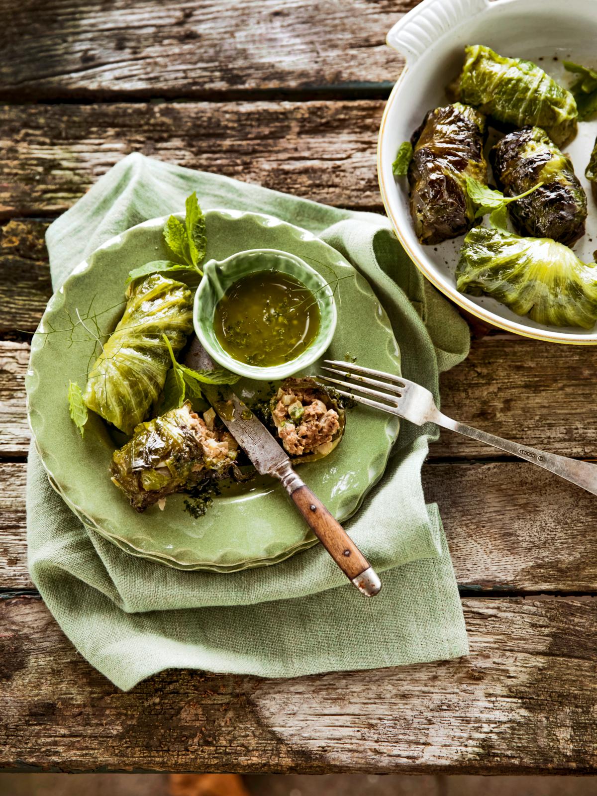 - Serveer de rolletjes met de saus en versier met extra basilicum en munt. Smakelijk!