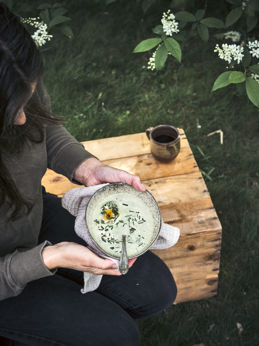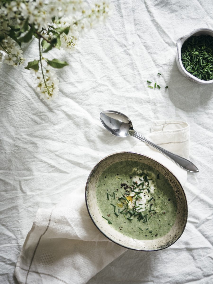 Een soepje smaakt altijd wel goed. Dat geldt zeker voor dit vitaminebommetje: brandnetelsoep. Je serveert ‘m met een gepocheerd eitje, slagroom en bieslook. Dus het is óók een lust voor je ogen.