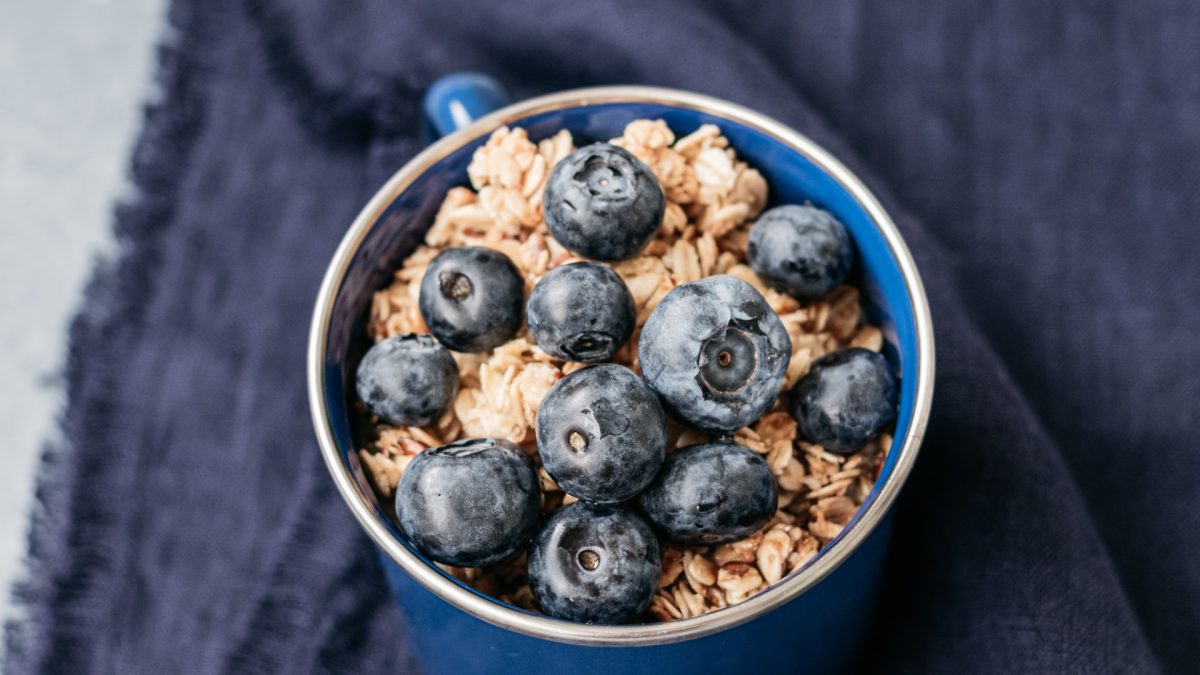 - Twee handjes blauwe bessen of gemengd rood fruit (vers of uit de vriezer)