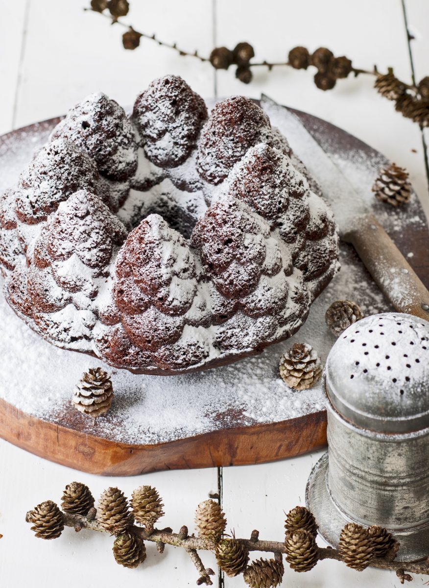 - (dennenbomen)bakvorm met een inhoud van 2,4 liter (een diameter van zo’n 24 cm). Wij gebruikten deze van Nordic Ware.