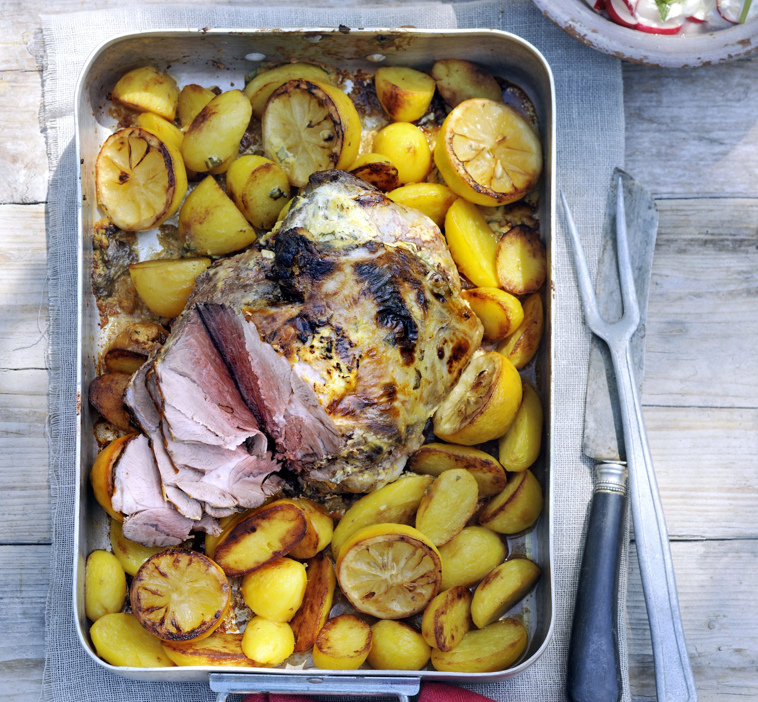 - Neem het folie van het lam en bak nog ± 10 min. voor een knapperig korstje. *Neem het vlees, aardappels en citroenen uit de oven.