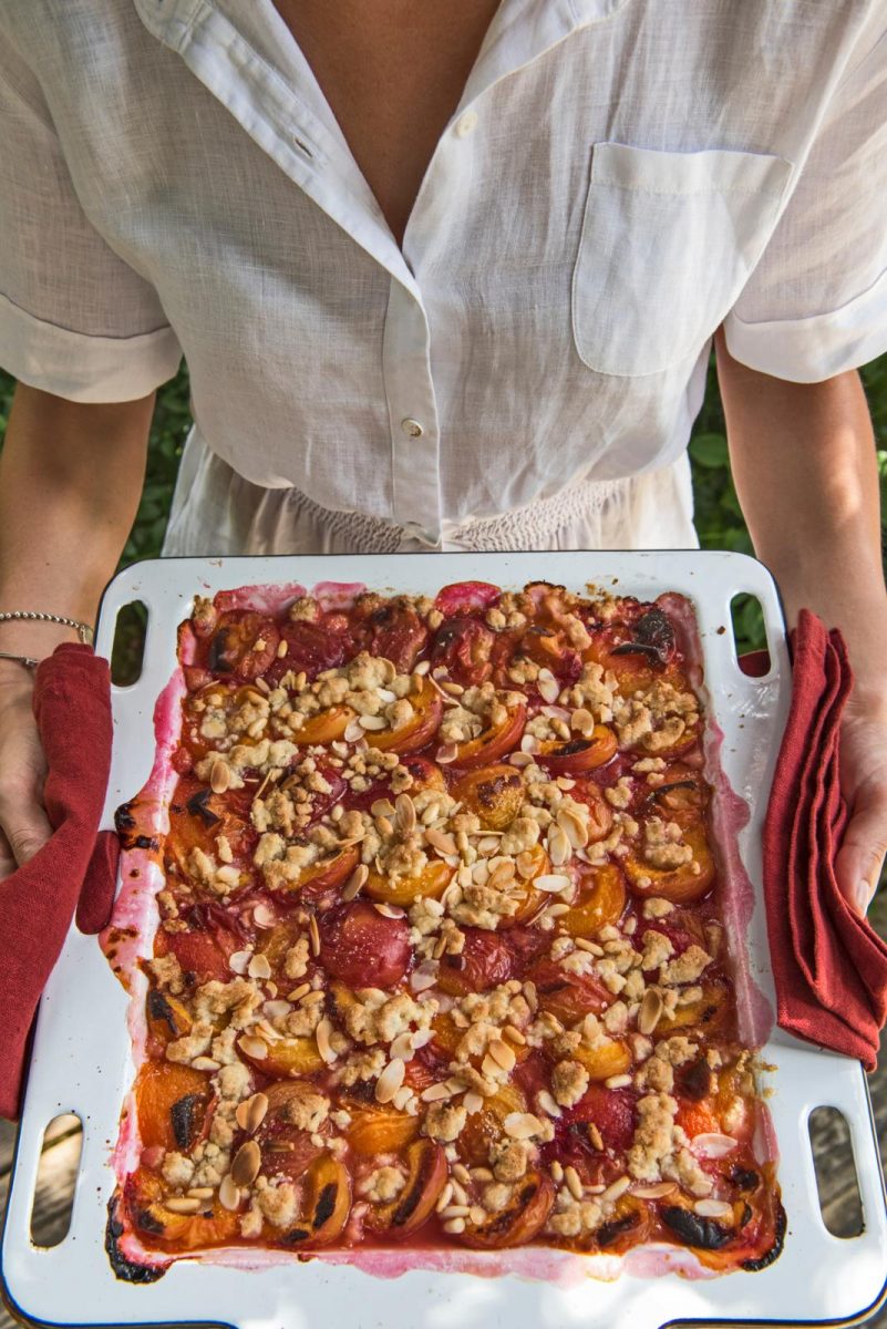 Het fijne van crumble: het is heel simpel – maar smaakt goddelijk. Deze crumble met abrikozen, vanille en amandelen komt uit de Italiaanse keuken. Heerlijk als dessert voor een feestelijke zomerse lunch of diner. Maar het smaakt minstens zo lekker bij de koffie…