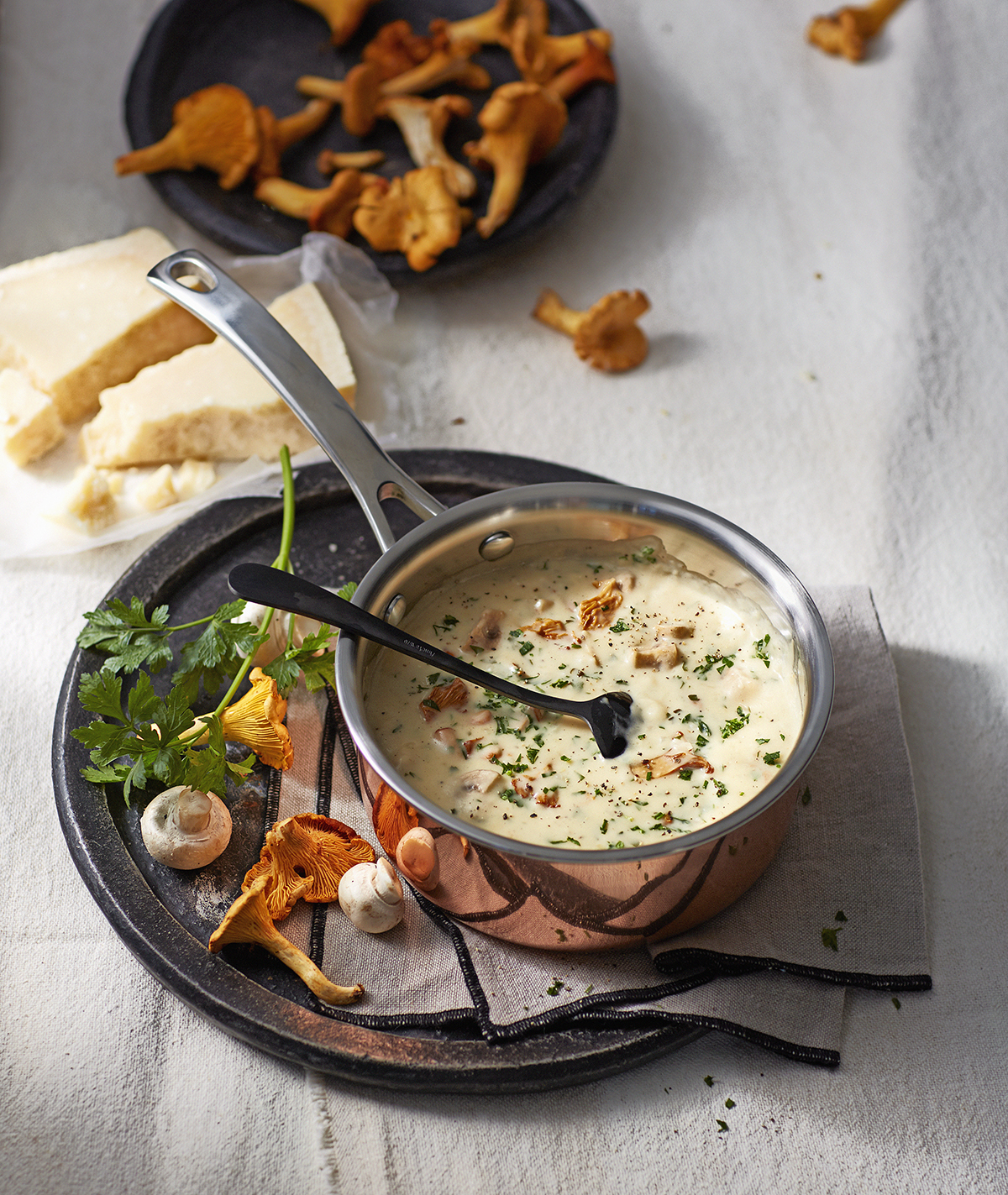 Het is gewoon een feit: met de juiste pan lukt een gerecht net even wat beter. Daarom alle aandacht voor deze bijzonder mooie pan én bijpassend gerecht! Paddenstoelen-suprêmesaus saus | 4 personen Ingrediënten:
