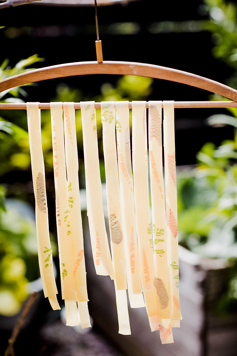 Leg de pastavellen op een met bloem bestrooid werkvlak, snijd ze met de hand in brede repen en hang ze over een oude hanger of de leuning van een houten stoel.