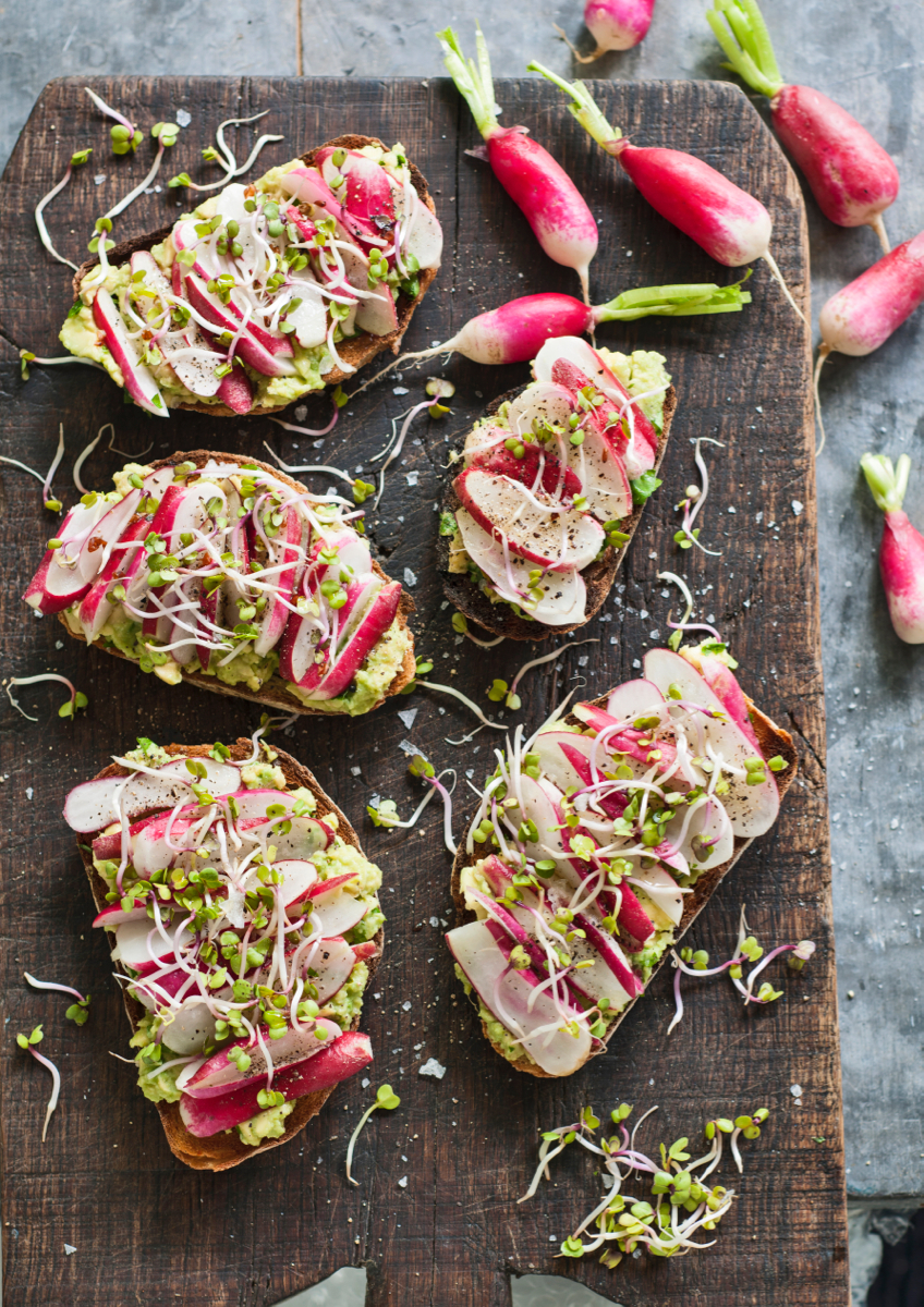 Voorjaarsgerecht: toast met radijsjes en avocado