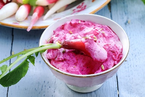 - Pureer de roomkaas samen met de biet en de helft van het venkelzaad.