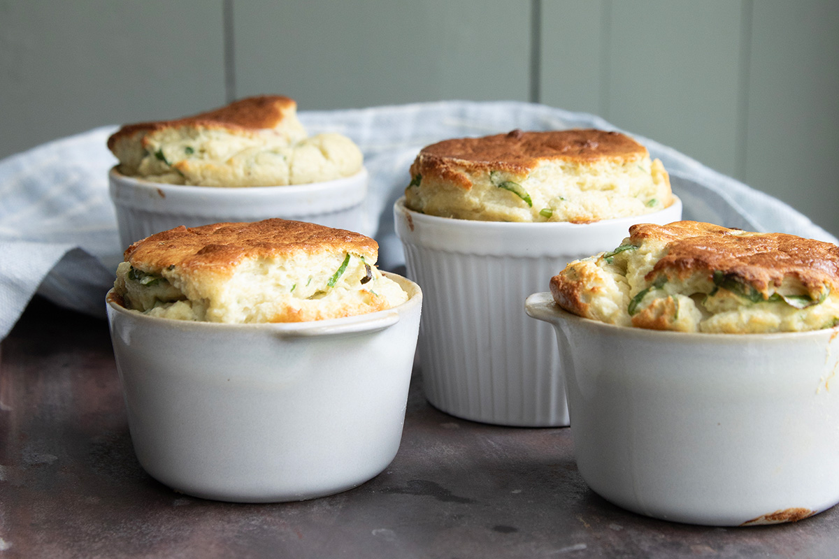 Souffleetjes zijn een beetje vergeten gerechtjes, terwijl ze heel lekker zijn en helemaal niet moeilijk om te maken. Met verse eieren en groene kruiden uit de tuin zet je heel gemakkelijk een eyecatcher op tafel, voor brunch, lunch of als voorgerechtje.