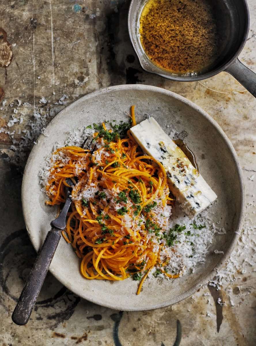 Goud kleurt de herfst… buiten én op je bord. Met flespompoen kun je alle kanten op. Je kunt er bijvoorbeeld zelf pasta van maken. Deze pompoenpasta met bruine boter en gorgonzola kleurt prachtig, en smaakt heerlijk.