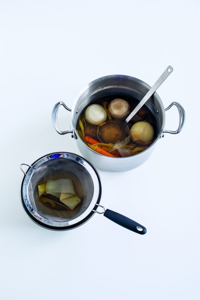 TIP Kook de bouillon niet te lang, zodat de groenten en de smaakmoleculen heel blijven en de bouillon mooi helder is.
