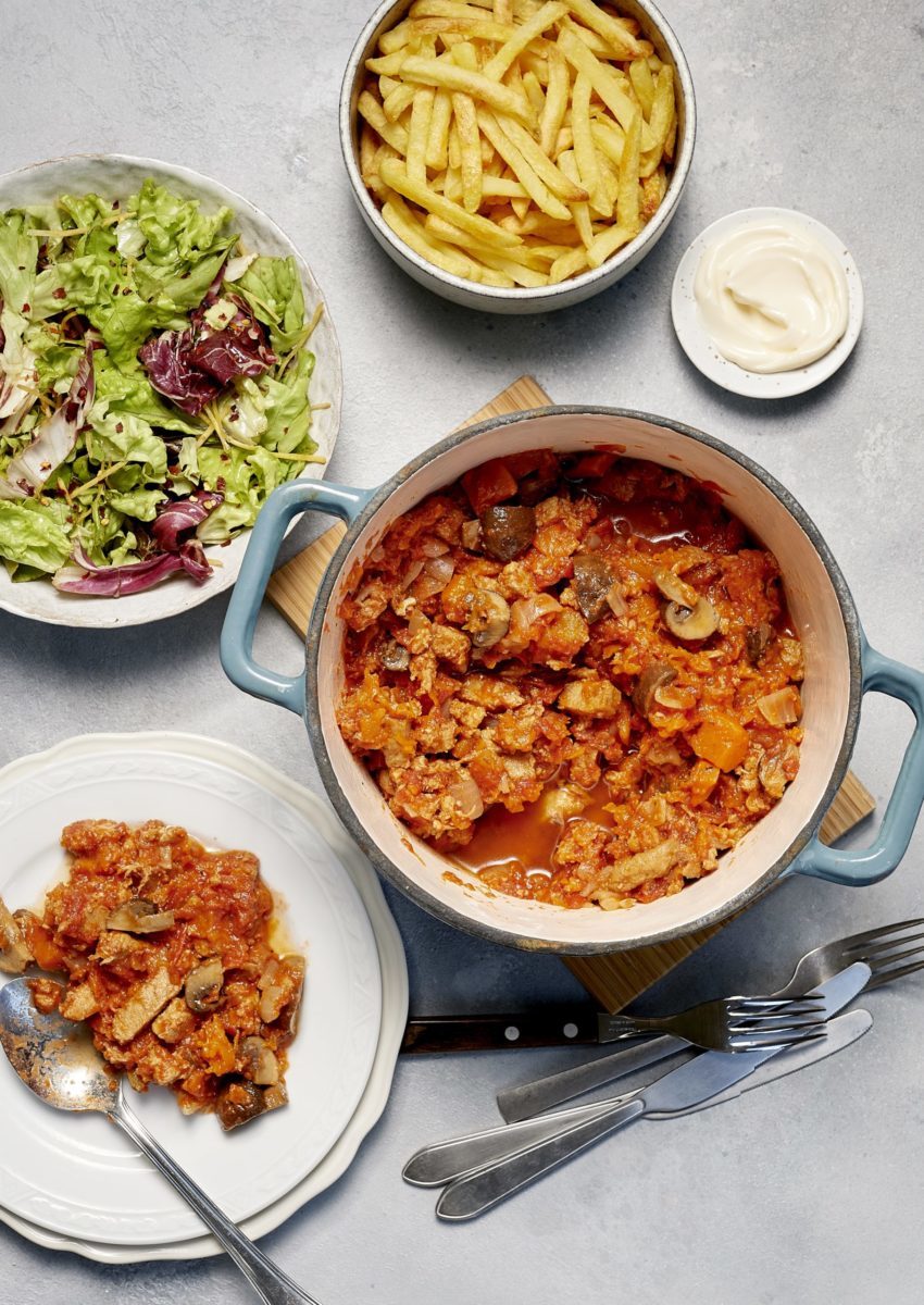 - 400 g vegan stoofstukjes (bijvoorbeeld van AH)