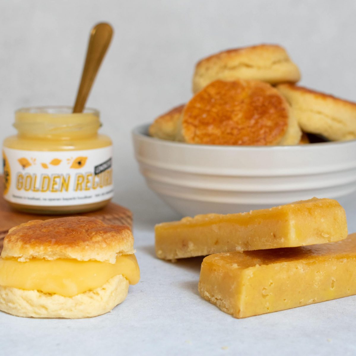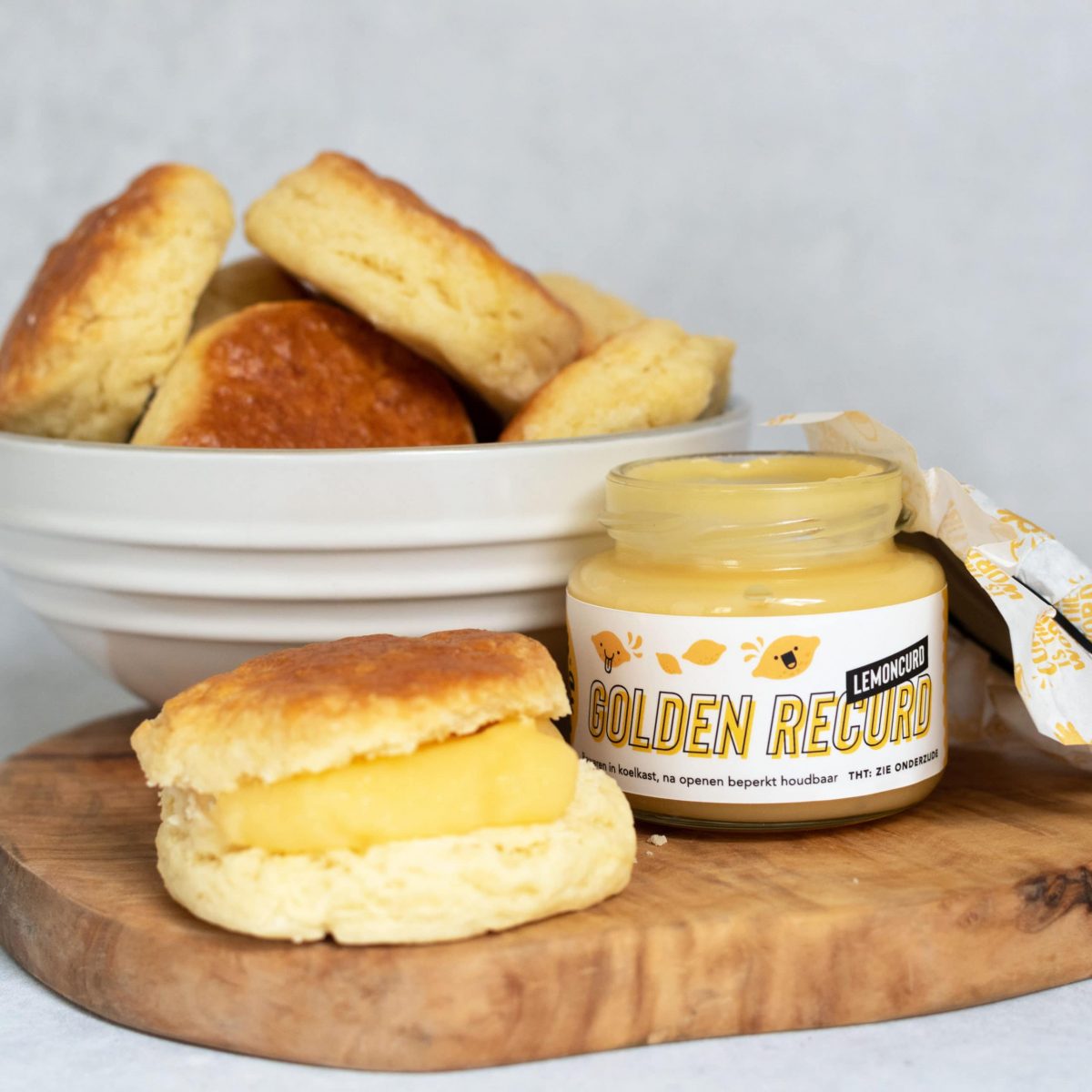 Ben je nou zelf geen bakprins(es), bestel dan vooral (ook) deze heerlijke scones of lemon bars: brosse, volromige shortbread koeken met een topping van friszoete citroen. De scones kun je ook bestellen in een glutenvrije variant. Prijs € 10 / 8 scones & (vanaf) € 10,95 / 6 bars. Je kunt natuurlijk ook gewoon gaan voor het totaalpakket: een Goedgecurd arrangement met een curdsmaak naar keuze én scones. Of dan ook maar meteen écht alles: een Goedgecurd verwenbox met een curd, scones en de lemon bars. Prijs € 13,95 (Goedgecurd arrangement) & € 23,95 (Goedgecurd verwenbox).