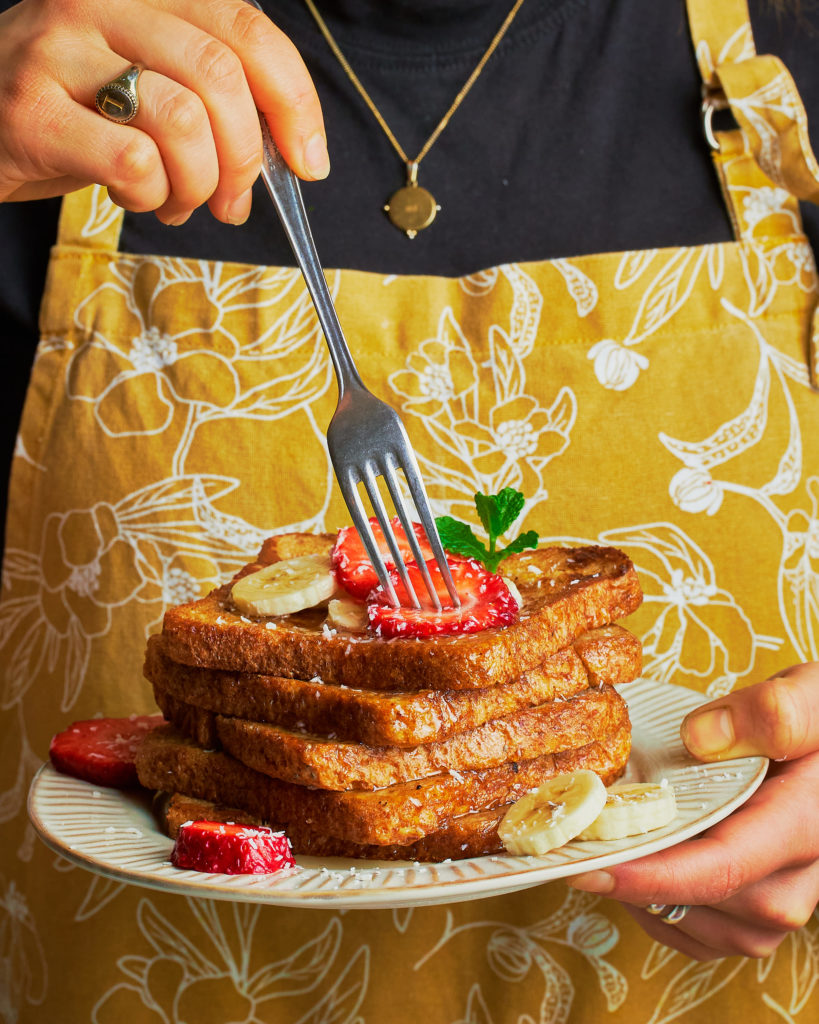Heerlijk (vegan) wentelteefjes recept om jezelf en/of een ander mee te verwennen uit het nieuwste boek van Lenna Omrani: ‘Every Day Vegan Budget Friendly’.