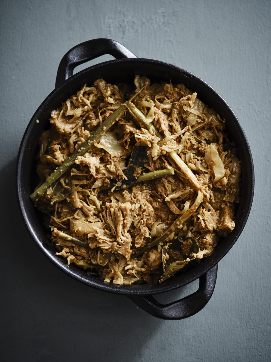 - Verlaag de temperatuur en laat de rendang 1 uur sudderen met de deksel op de pan terwijl je af en toe roert. Dikt de saus te ver in? Voeg dan wat water toe. Voeg in de laatste 15 minuten van de kooktijd de witte kool en de jackfruit toe.