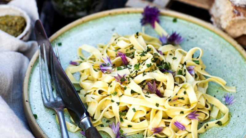 Wij zijn dol op bieslook, in de tuin én op ons bord. Wat dat laatste betreft: soms is simpel het lekkerst. Neem nou deze pasta. Een klontje roomboter maakt ’m heerlijk crèmig, de geraspte citroen en bieslook geven net een beetje pit. Voeg kleur toe met bieslookbloemen.