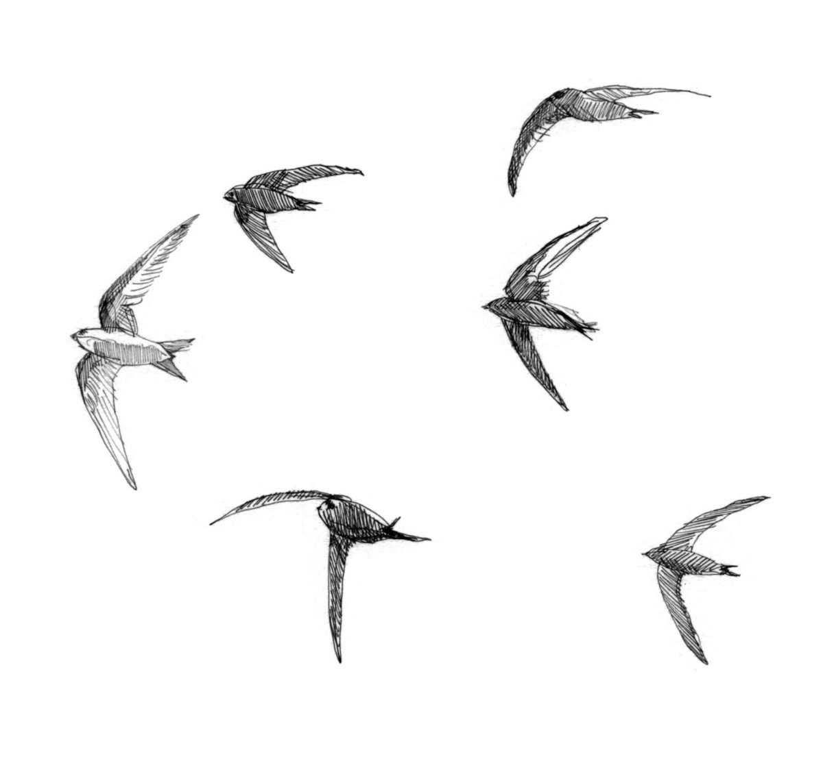 Hoe dan? vraag ik me af. Ik vind het verbazingwekkend. Ze zijn perfect gebouwd voor het ontwikkelen van hoge snelheden. Gierzwaluwen landen nooit op de grond. Ze hebben wel pootjes, maar wat voor pootjes. Ze kunnen er niet eens op staan. Wel kunnen ze zich met de scherpe nageltjes vastgrijpen aan muren. Er is een periode waarin de gierzwaluwen niet continu aan het vliegen zijn, en dat is wanneer ze hun komvormige nest bouwen en gaan broeden. Het paar zorgt samen voor de jongen. Bij slecht weer leggen ze grote afstanden af om aan voldoende voedsel te kunnen komen.