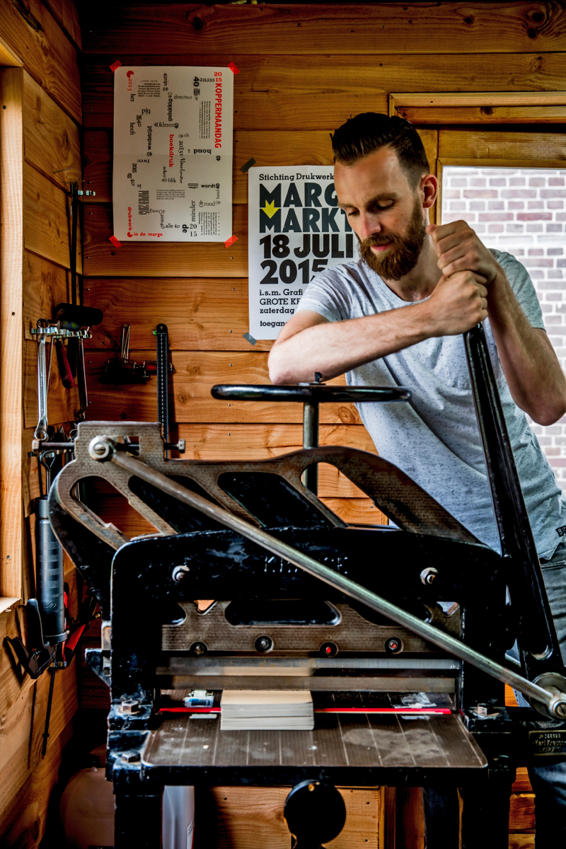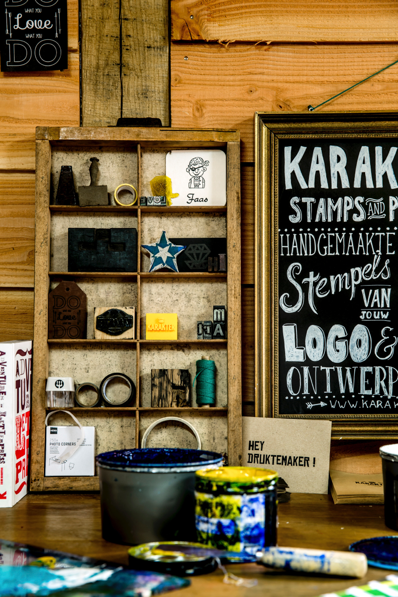 Voor Bart Heesen was het rond zijn dertigste nu of nooit: het echte ambacht van drukker leren. Die prachtige oude persen, de geur van inkt, het fijne papier, dáár lag zijn hart. Nu heeft hij thuis zijn eigen werkplek, waar het elke dag zindert van creativiteit. Met zeven drukpersen en kasten vol letters. Wil jij een mooie, ambachtelijke stempel van Bart winnen? Lees dan snel verder. Bart heeft zich gespecialiseerd in het vervaardigen van stempels en in zogenaamd ‘letterpress’ drukwerk. Heel geschikt voor geboorte-, trouw- en rouwkaarten maar ook voor labels en posters. “Letterpress is een moderne versie van de klassieke boekdrukkunst: het combineert de techniek van vroeger met de wensen van nu. In tegenstelling tot moderne printers kun je met oude drukpersen letters in reliëf drukken op bijzondere papiersoorten.” Vroeger mocht de vorm het papier slechts ‘kussen’, zodat de afdruk niet zichtbaar was op de achterkant. Nu maakt Bart teksten en ontwerpen voelbaar. “Drukkers noemen dat een ‘preeg’, dan is de vorm erin gedrukt. Of een ‘moet’, dan ligt de vorm er als het ware bovenop.” Het is een arbeidsintensieve drukwerkprocedure: voor elk ontwerp maakt Bart een drukplaat (polymeerplaat), per kleur én per kant. Daarbij: voor elke drukgang moet de pers worden gereinigd, opnieuw gezet en geïnkt. “Voor hoeveel kleuren of kanten je ook kiest, alle kaarten worden stuk voor stuk met de hand gedrukt. Dat maakt het resultaat zo ambachtelijk: elke kaart is uniek.”