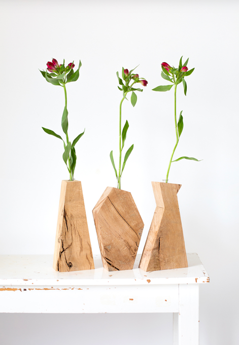 Ontwerper Margriet Foolen duikt geregeld in de bak met resthout van een bevriende meubelmaker. De grote stukken hout die ze daar zag, veelal eik en iep, brachten haar op het idee van de Restwood-vazen. Ze bedacht drie archetypische vaasvormen en boorde aan de bovenkant een gat waarin een los reageerbuisje zit voor de bloemen. “De vaasjes zijn allemaal uniek”, vertelt Margriet, “afhankelijk van de houtsoort iets breder, smaller of platter, soms is er zelfs een stukje vanaf.” Margriet is product- en meubelontwerper en heeft haar eigen Studio Divers in Bergen op Zoom. De Restwood-vazen zijn circa 30 cm hoog en kosten € 39,95 per stuk, www.margrietfoolen.com