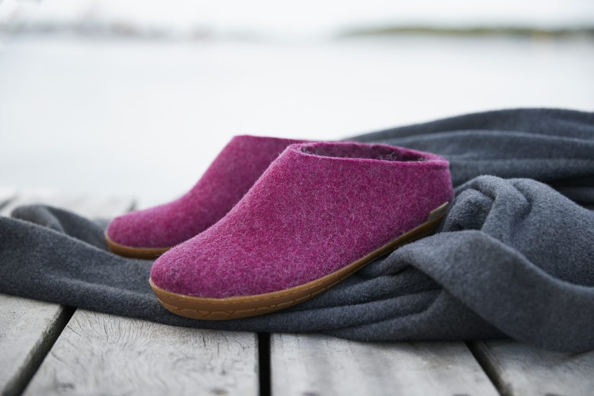 Glerups pantoffels zijn gemaakt van vilt van 100% schapenwol dat ademt en tot 35% vocht kan opnemen. Zo voelen de pantoffels altijd droog en warm aan. De buitenzool heeft een anti-slipwerking en is gemaakt van natuurlijk gelooid kalfsleer. De dubbele laag vilt in het voetbed zorgt voor de nodige demping. Met deze nieuwste kleur -Cranberry – ben je helemaal in kerststijl.