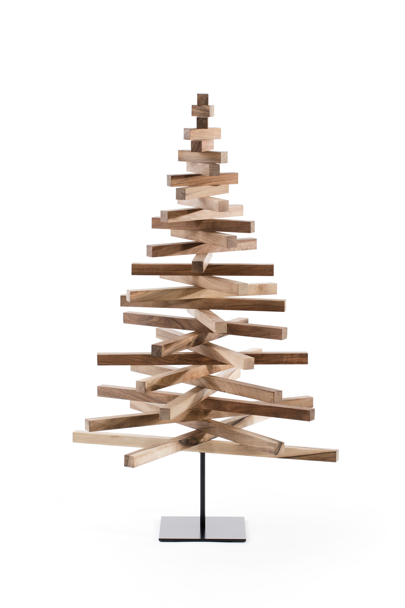 Boom Yelka van eikenhout, in 3 maten, vanaf Ø 65 x h 75cm, € 115. Ook verkrijgbaar in esdoorn en walnoot, www.houtenkerstboom.com.