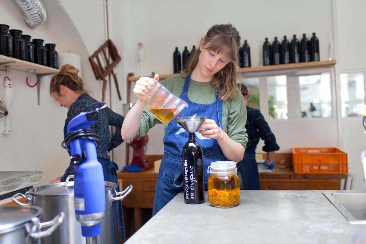De zepen van biologische zeepziederij Werfzeep zijn groen. Niet per se van kleur, maar wel van karakter. Elk blok wordt handgemaakt van bladeren, kruiden en bloemen van het seizoen.