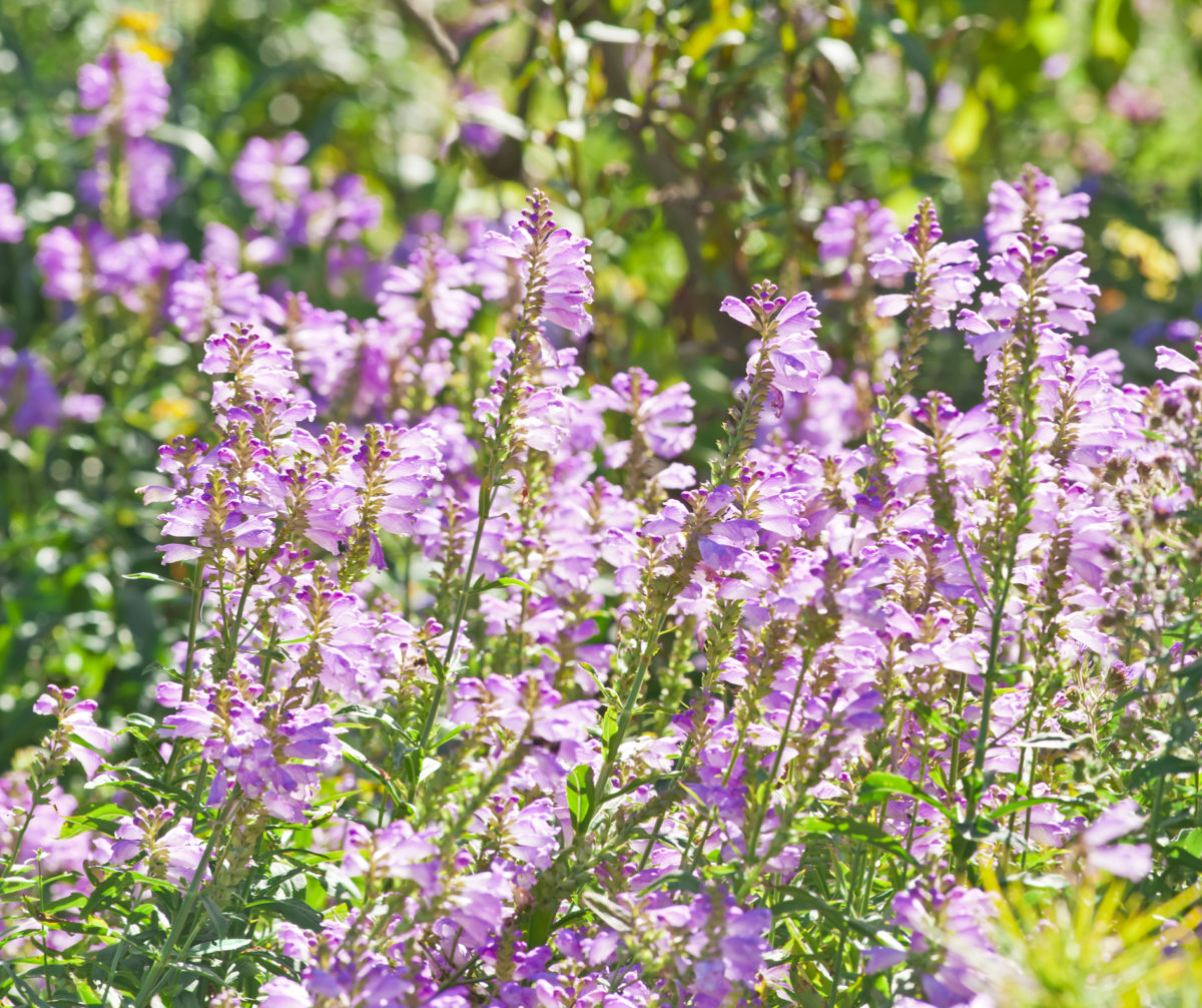 - Roze tot paars: Physostegia virginiana ‘Variegata‘