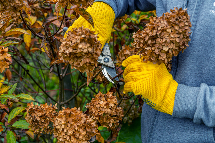 Snoei de takken van de pluimhortensia en hortensia ‘Annabelle’ flink terug boven een duidelijk oog. Varieer in snoeihoogte, dan krijg je straks ook bloemen op verschillende hoogtes.