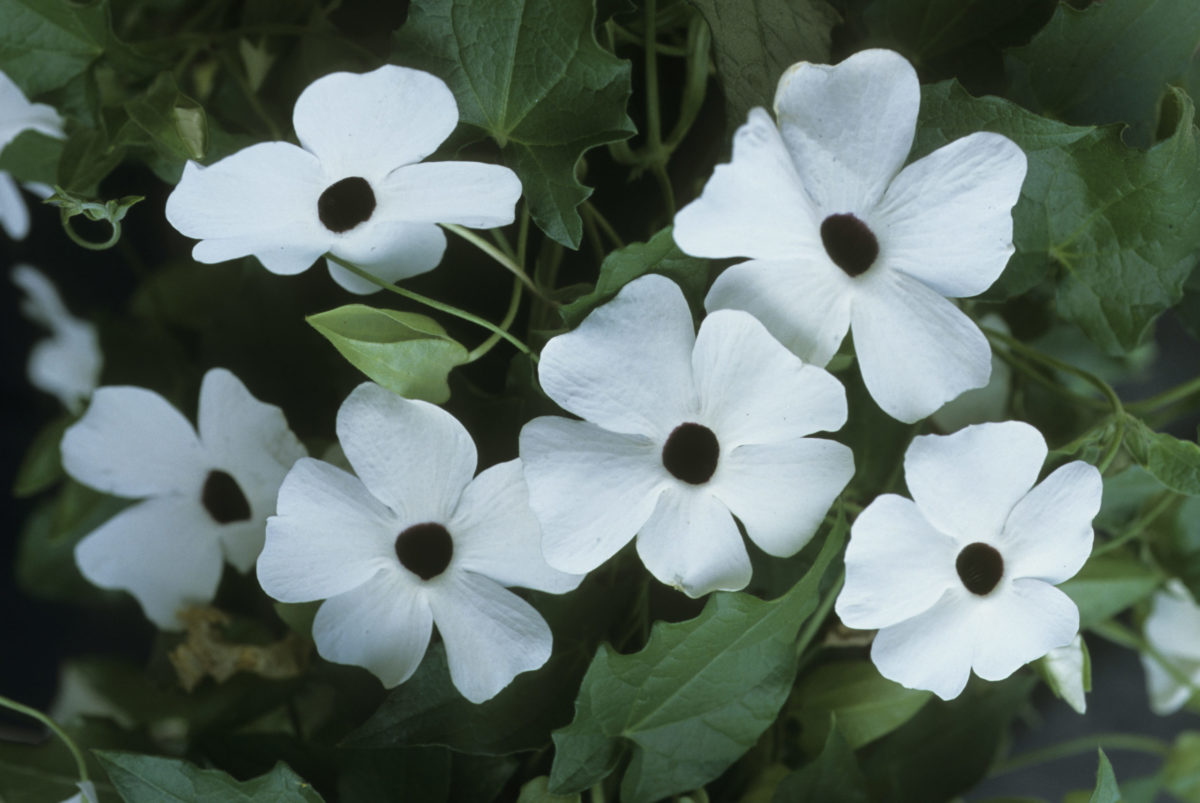 - Wit zonder zwarte ogen: Thunbergia alata ‘Sunrise white’
