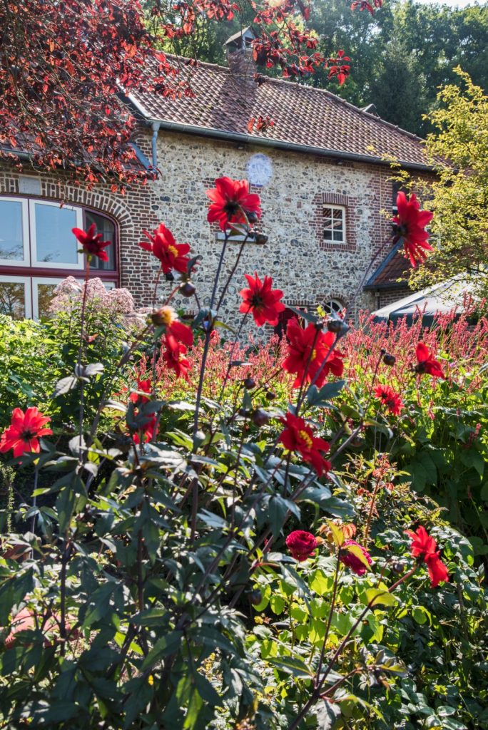 Toen ze er kwamen wonen lag de tuin rond de oude hoeve net over de grens van België er verwaarloosd bij, maar Maria toverde de wildernis om tot een paradijs. Ook in september bloeien de borders nog volop, als een warme afscheidsgroet van de zomer.