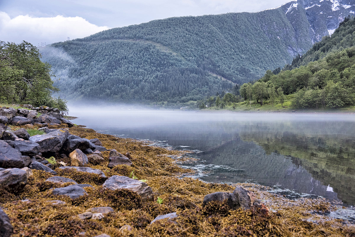BERGEN – EIDFJORD VIA HARDANGER – 168 KM Onze laatste etappe is in zicht: Eidfjord. Een begeerde zomerbestemming voor Noren én voor Aziaten, zo blijkt al gauw. Op de kade klitten groepjes Japanners samen voor een identieke foto. We gaan voor een flinke wandeling naar de Kjeasen berghoeve. Een steil pad leidt ons over kabbelende beken, glibberige rotsen en modderige paden de berg op. Na enkele uren, en geen spoor van ons doel in zicht, geven we er de brui aan en keren we op onze schreden terug. Voor een laatste maal genieten we van de absolute schoonheid van de omgeving en van een barbecue op het strand.