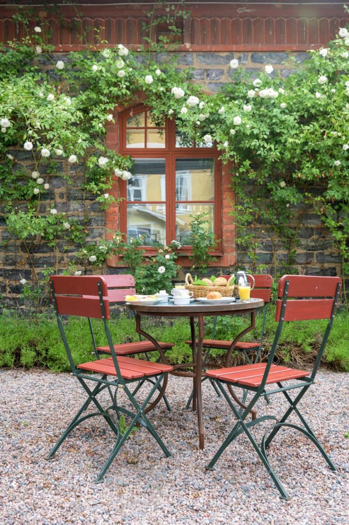 Achttien kilometer verderop is het ‘thuiskomen’ in Brukshotellet Långshyttan. In dit kleine landgoedhotel doen Celest en Carl Thalén alles zelf. Volgens het echtpaar is het geen kunst om lekker te koken met zo veel mooie ingrediënten uit de streek. We eten er onder meer een heerlijke zalmtartaar met lokale mosterd. De volgende ochtend genieten we van het ontbijt in het zonnetje voor de schuur, opgebouwd uit groenblauwe kopererts-slakken. Ze zaten hier in de bodem, als restproduct van de kopermijnen in deze streek.