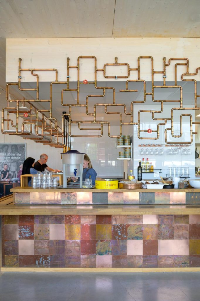 Midden in het dorpje Stora Skedvi treffen we een foodhall (saluhal) in een oude zuivelfabriek. Binnen stoken knäckebröd-bakkers de houtovens dagelijks op. Binnen twee minuten is het ronde ‘Skedvi Bröd’ gebakken. Het hele proces gebeurt hier nog met de hand. Mede dankzij een van de eigenaren, Benny Andersson van Abba, die deze laatste ambachtelijke fabriek, samen met andere prominenten, van de ondergang redde. In het naastgelegen restaurant kun je het brood proeven, naast de culinaire lunch. Wij nemen ons bord mee naar de kleurige zitjes buiten, tussen oude zeecontainers.