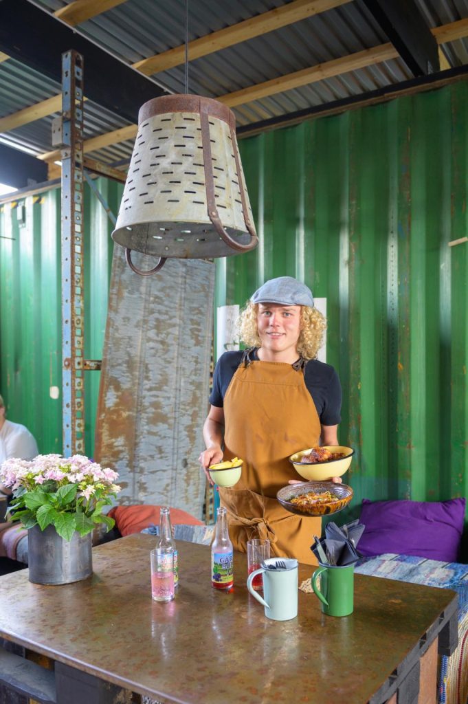 Zo’n twintig minuten landinwaarts ligt de culinaire hotspot Solgårdskrogen. Jonathan en Genevieve Bjurenstedt breidden hier een B&B uit met een restaurant in een kas. In de open buitenkeuken karamelliseren ze groenten uit eigen moestuin boven het vuur. Ook zijn er smulpotjes gevuld met zelfgemaakte ‘pickles’ en paddenstoelenpaté. Lunchen kan aan een picknickbank of in het gras naast de schapen. ’s Avonds bereidt Jonathan een streekproductenmenu op een stoer fornuis in de kas. Dineren doe je hier tussen de kruiden en groenten. solgardskrogen.se