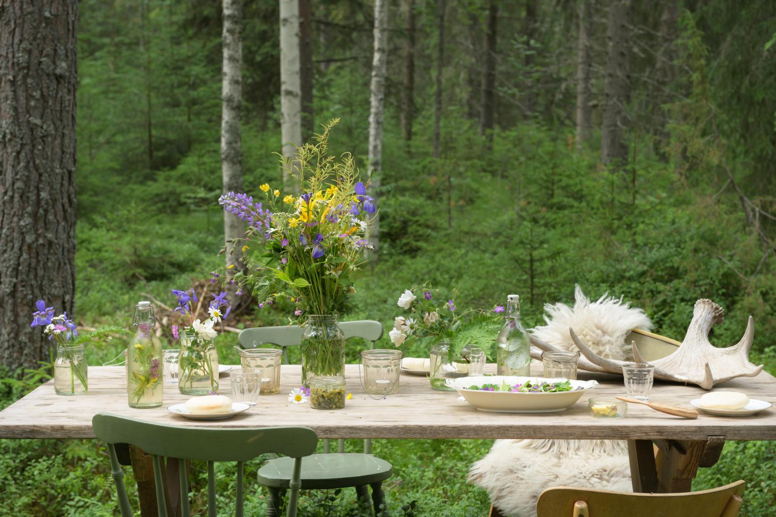 In het stille Furudal bieden Nederlanders Willem Terstegen en Mireille van Ruiven duurzame accommodaties aan. Midden in het bos hangt de Supermaan, een ronde tent voor twee personen met houtkacheltje. Verderop staat een bijzondere boshut met een stalen schil. Tussen de sparren is de tafel gedekt voor een bosdiner. Er is kruidenboter van daslookblaadjes, bloemenwater van boskruiden en een wilde salade. “In de zomer gaan we wildplukken, in de winter serveren we kruidige stoofpotjes op het bevroren meer”, vertelt Mireille.