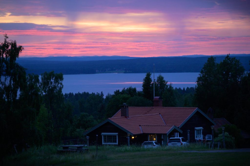 De weg naar Tällberg leidt door een schilderachtig binnenland. Het dorpje ligt op een heuvel aan de voet van het Siljanmeer. Hans Christian Andersen was verliefd op de houten huizen met hun sierlijke schoorstenen van keien en keramiek. We kijken erover uit vanaf ons terras bij Tällbergsgårdens Hotell, onder het genot van een alcoholvrije cider van rabarber en aardbeien, een klassieke combinatie die ook in het toetje van het heerlijke midzomermenu terugkomt.