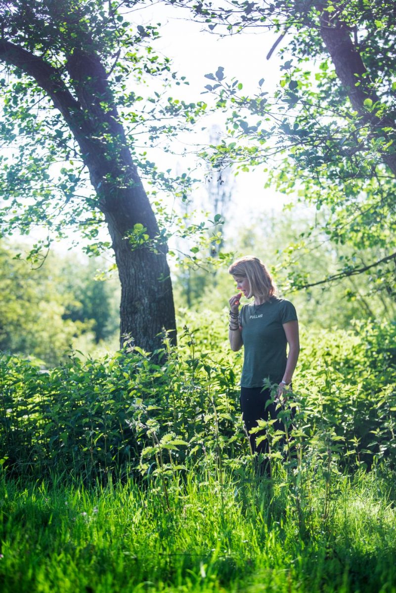 “In de afgelopen jaren heb ik geleerd te leven van wat het land me biedt. Ik ben fitter, sterker en gezonder dan ooit. Tijdens mijn eerste fietstocht zag in de Balkanlanden mensen van alles plukken. Dat vond ik interessant, dus stapte ik af en vroeg wat ze aan het plukken waren en wat ze ermee deden. Van iedereen die ik ontmoet leer ik iets. In Australië heb ik een cursus permacultuur gedaan en in de wildernis van Nieuw-Zeeland heb ik gejaagd. Nooit gedacht dat ik zou jagen, ik ben al jaren vegetariër, maar ook dat kun je dus leren. Misschien is dat wel de beste les: alles valt te leren. Je moet er alleen de tijd voor nemen. Onlangs heb ik vijf maanden in Zweeds Lapland doorgebracht. In de vrieskou met ski’s en een sleetje. Daar valt niets te wildplukken, maar dat is een uitzondering. Per land en per omgeving moet je bij nul beginnen en leren wat er allemaal voorhanden is. Bij elk plantje sta ik dan letterlijk stil. Even kijken, ruiken, voelen en opzoeken of het eetbaar is. Zelfs in de woestijn van Jordanië is nog best veel te vinden. Ik zag de bedoeïenen met mandjes op pad gaan en vroeg of ik mee mocht. Zij lieten me alles zien en proeven. Na afloop gingen we samen koken. Bij verschillende culturen heb ik meegeholpen voedsel te vinden en een maaltijd te maken. Wijze levenslessen waar ik in Nederland misschien niets aan heb, maar die me wel kracht geven en het vertrouwen dat ik onafhankelijk kan zijn. Ik ben altijd iemand geweest die alles zelf wil doen. Op reis regel ik mijn eigen vervoer, of dat nu een fiets, paard of ski’s is. Ik kan navigeren en een shelter bouwen. Ik wil niet iemand nodig hebben. Het prettige gevolg daarvan is dat als mensen me uitnodigen voor een maaltijd of een slaapplaats, ik dat in alle vrijheid kan accepteren. Ik ga erop in omdat ik het leuk vind, niet omdat ik een slaapplek of maaltijd nodig heb. En andersom kan ik hen ook in mijn kamp uitnodigen. De lokale bevolking is altijd welkom.”