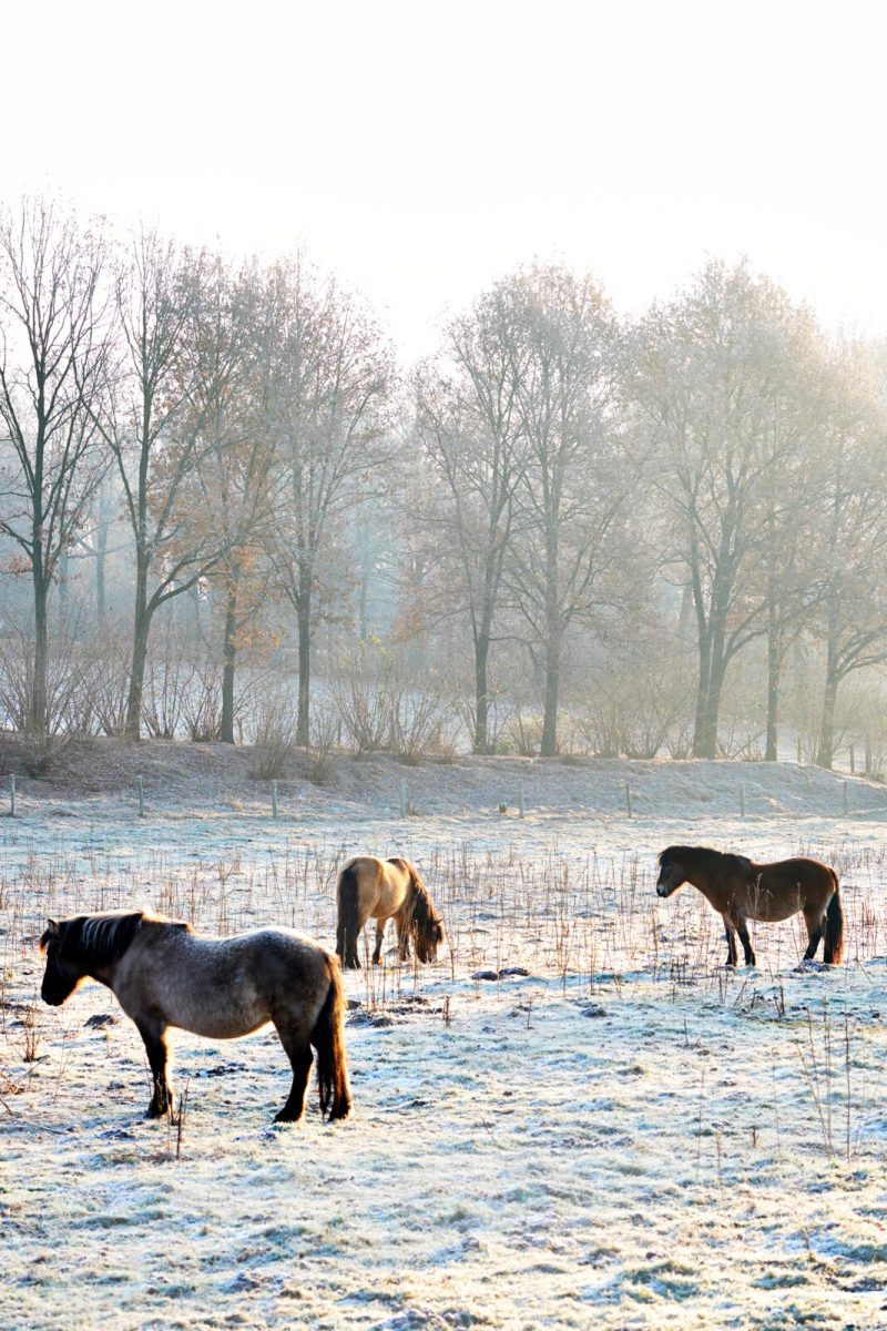 In natuurpaviljoen de Posbank is het in de winter behaaglijk warm, terwijl het bijna voelt alsof je in de buitenlucht zit. Want het spiraalvormige gebouw is opgetrokken uit veel glas en ligt als het ware opgevouwen in een plooi in het landschap. Het dak wordt gedragen door fikse boomstammen, het plafond is van houtsnippers. De klim die je buiten naar het paviljoen toe hebt gemaakt, kun je binnen voortzetten tot je weer buiten bent: op een dak van gras, mos en heide. Natuurpaviljoen de Posbank heeft een fijne kaart met goeie soepen en salades, een voortreffelijke honing-walnotentaart en poffertjes. Je kunt er ook Veluwse specialiteiten kopen om mee naar huis te nemen. Beekhuizenseweg 1, Rheden, www.paviljoendeposbank.nl