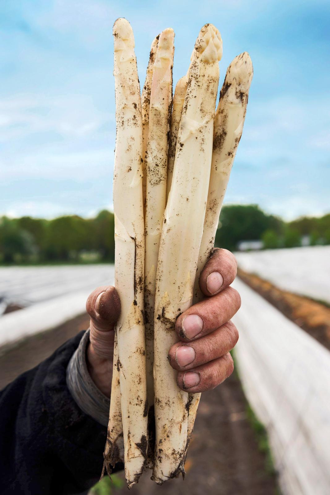 Amper onderweg of we zijn alweer afgestapt. De orangerie Mattemburgh van het gelijknamige, historische landgoed is te mooi om links te laten liggen. Daar waar eens de imposante collectie kuipplanten stond, is nu een restaurant. Een idee van uitbaters Frank en Marloes van Akkeren die midden in dit verstilde park een eetbaar landgoed wilden creëren. De keuken gebruikt zo veel mogelijk eigen groenten en fruit, gecombineerd met producten uit de streek. Op de kaart staan niet het vlees of de vis centraal, maar de seizoengroentes. Naast prei en komkommer natuurlijk ook asperges. Vers afgestoken door de boer iets verderop.